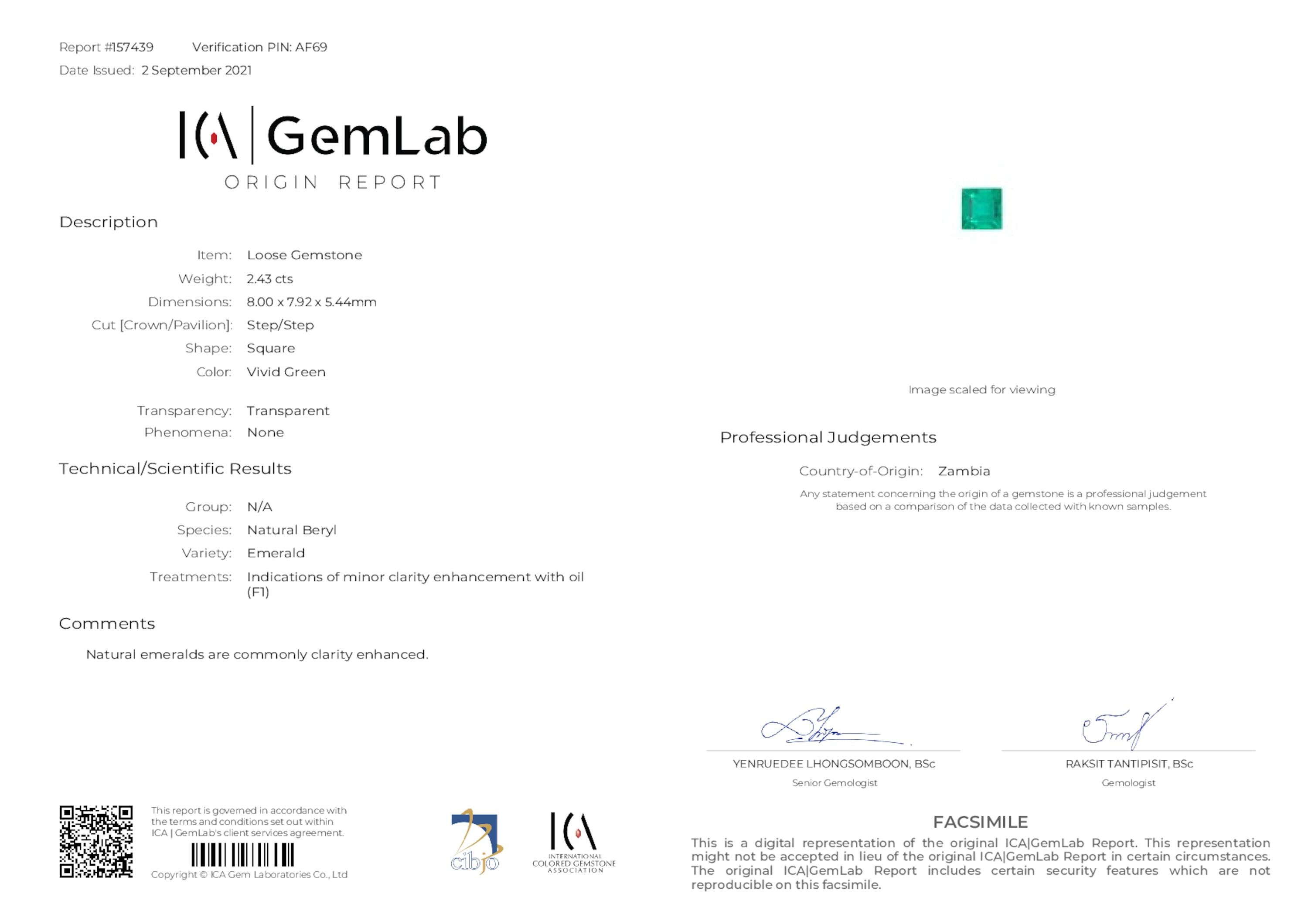 2.43 ct. Square Emerald ICA Minor